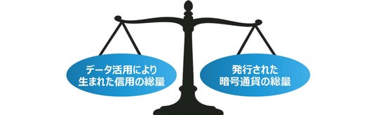 また、行政側でのデータ活用により生まれた信用の総量と発行済み暗号通貨の総量とが一致する関係性が保たれるため、発行された全ての暗号通貨には同等の信用に裏付けされていることが保証されます。