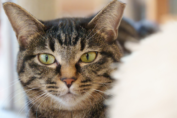 望遠ばっかになっても味気ないので、ここからはいつもの保護猫シェルターqueueで室内猫編。こんな感じでそっと狙う……、全然「そっと」じゃないけど、めちゃ不審がられてるし。