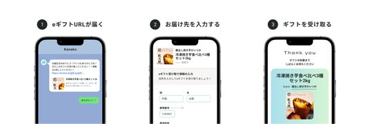 今回のAnyGiftの提供により、オンラインショップ「蔵出し焼き芋かいつか」で対象商品がeギフトとして贈れるようになります。
