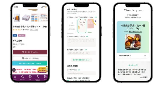 AnyReach株式会社(本社:東京都港区、代表取締役:中島 功之祐)は、カルビー株式会社(本社:東京都千代田区、代表取締役社長兼CEO:江原 信)が展開するオンラインショップ「蔵出し焼き芋かいつか」にてギフトサービス『AnyGift(エニーギフト)』の提供を開始しました。