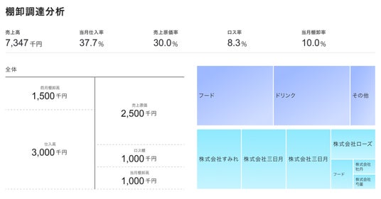 インフォマートとの連携により取引先別やカテゴリー別の仕入状況を分析できる「棚卸調達分析」