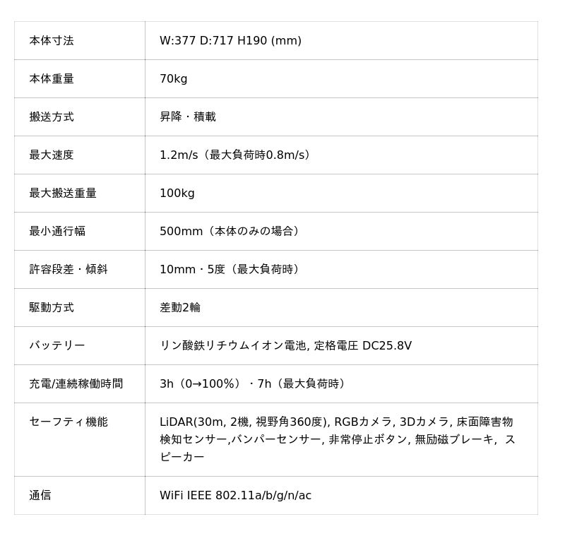 小型で小回りが利き、既存の棚や台車を持ち上げて運べる柔軟性、PC・スマートフォンだけで設定できる操作性により、専門業者を必要とせず、さまざまな現場でスムーズに導入いただけます。