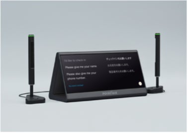 両面ディスプレイを搭載し、互いの言葉を瞬時に翻訳して表示することで、自然な対話がそのまま成立する体験を可能にします。さらに、高感度マイクによる精緻な音声認識や、人の存在を感知して自動で画面が起動するスマートセンサー、会話履歴をワンタッチで消去できるプライバシー設計など、公共空間でも直感的かつ安心して利用できるように設計されています。