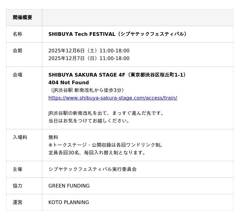 SHIBUYA Tech FESTIVAL、始動。