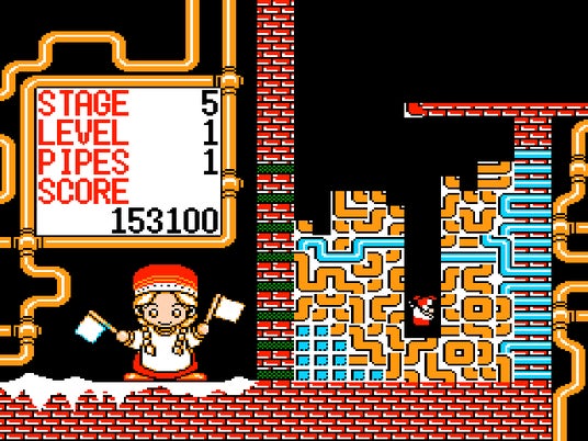 本作は1991年にリリースされたアクションパズル。プレイヤ−の目的は、次々と落ちてくるパイプブロックを使って、画面右から左へと水を運ぶパイプラインを作ること。ブロックはふたつひと組で構成されており、回転させることが可能な他、半分が宙に浮いた状態で着地すると、宙に浮いた方は分かれて落下するという、落ちゲーではお馴染みの特性を持っています。
