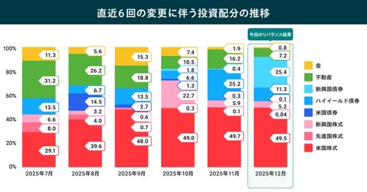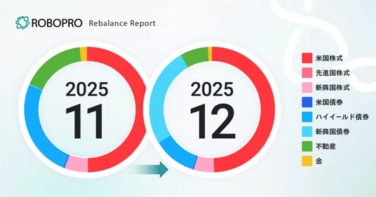 SBIグループで革新的な金融ソリューションを提供する株式会社FOLIOホールディングスの子会社である株式会社FOLIO(本社:東京都千代田区、代表取締役:四元 盛文)は、2025年12月1日、AI投資「ROBOPRO」において、原則、月一回実施する投資配分の変更を行いました。