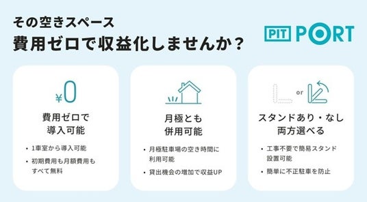 費用ゼロ・工事ゼロの時間貸し予約駐車場運営サービス「PIT PORT」: