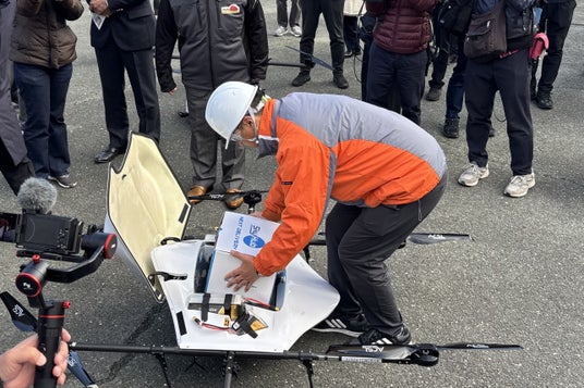 荷物をドローンで受け取った地域住民の竹下勝之さんは、「大雨が降ると土砂災害で通行止めになり孤立する場所なのでドローンで食料品や医療品など運んでもらうと助かります」とコメントしています。