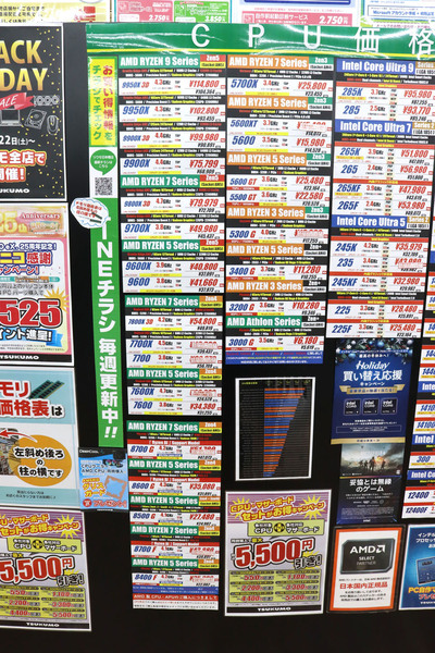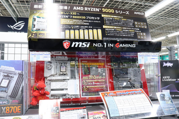 CPUの売れ筋については、価格と性能のバランスが良く、TDP65Wと冷却面でも扱いやすいことから「Ryzen 7 9700X」が一番人気となっているそうだ。次いでPCゲーマーから圧倒的な支持を受ける「Ryzen 7 9800X3D」が続くという。