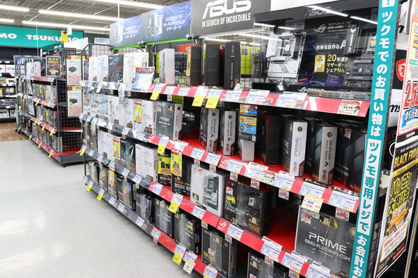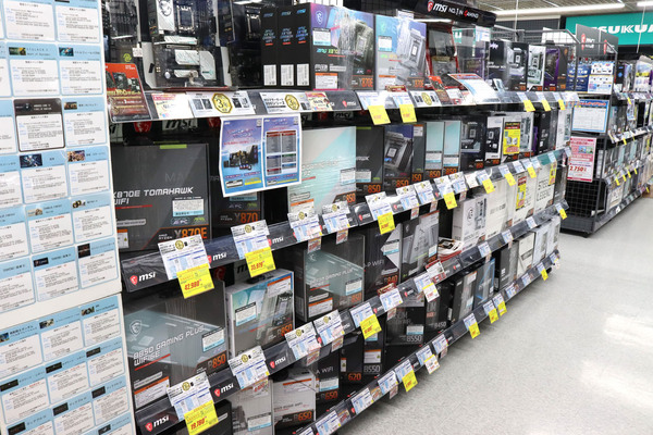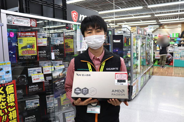 立地が「なんばパーク」寄りになり日本橋のメイン区画から少し離れてしまったが、超大型店舗内に移転したことで車による買い物がとても便利に。PCケースなどの大型パーツやBTO PCの持ち帰りも楽にこなせる店舗となっている。ここで、店舗スタッフの盛田さんから売れ筋製品などの話を聞いた。