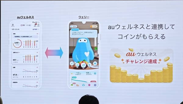 さらに、このデバイスと専用アプリは、auウェルネスと連携することでポイントや特典が得られる仕組みも用意されており、健康行動がちょっとしたメリットにつながります。