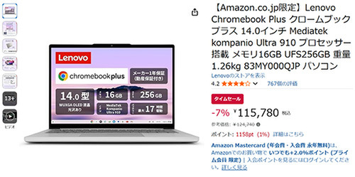 【Amazonタイムセール】Lenovo Chromebook Plus 14 Plus(83MY000QJP)登場!