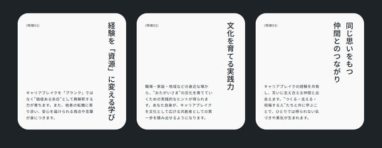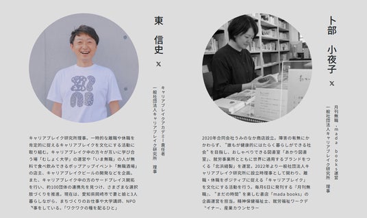 キャリアブレイク(意図的な立ちどまり)を過ごす人のための、オンラインコミュニティと、全国のサードプレイスをつなぐプラットフォームを運営しています。立ち止まった人が、地域の場や人との出会いによって視野をひらき、新しい転機が生まれていく流れをつくっています。HP:キャリアブレイクポータルサイト(https://careerbreak-lab.com/)