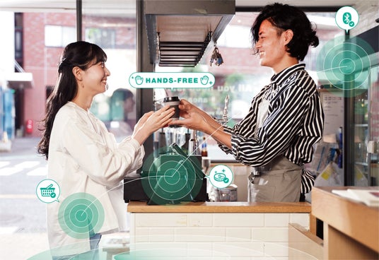 当社はスマートフォンをポケットやカバンに入れたまま、改札の通過やレジでの決済ができる「Bluetoothによる瞬間ハンズフリー認証」技術を開発・提供しております。