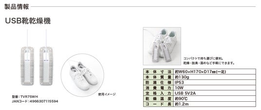 インテリア家電製品および、PCサプライ品の製造販売を手掛ける株式会社ヤザワコーポレーションは、USB靴乾燥機を12月中旬頃発売いたします。