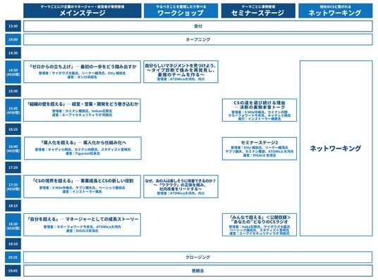 メインステージの登壇者は、製造業・HR・スタートアップ領域などのSaaS企業を中心に、先進的なCS組織づくりに取り組むマネージャーおよび経営者。CS組織の立ち上げから、属人化を超えた仕組み化、経営戦略におけるCSの位置づけまで、現場と経営の両視点での実践を語ります。