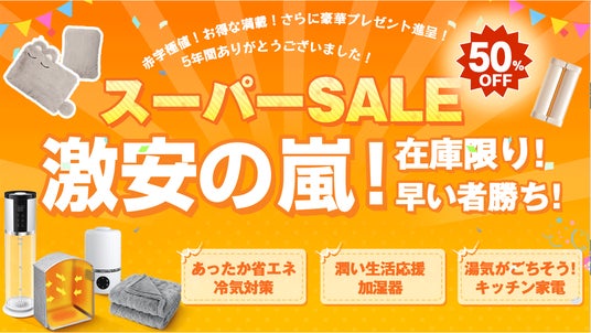 また、一部商品では最大50%OFFとなる期間限定クーポンも配布し、年間最安値でお求めいただけるチャンスとなっています。
