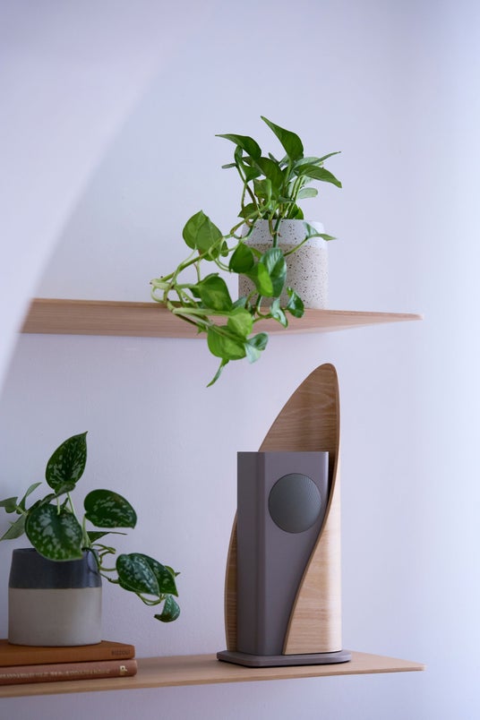 帆船を思わせる優雅な非対称フォルムと、曲線を描くプライウッドが印象的なポータブルBluetoothスピーカー。