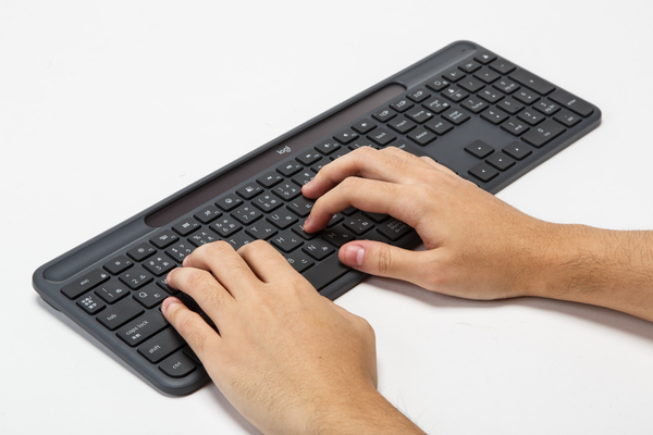 Signature Slim Solar+ K980は薄型キーボードですが、筐体はアルミケースでしっかりとした重量があります(700g)。そのため、強めに打鍵しても本体がグラつかず、安定感のあるタイピングが可能です。