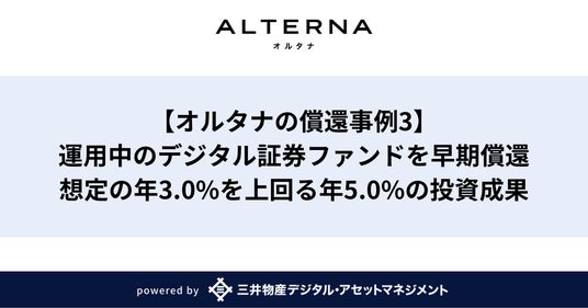 【オルタナの償還事例3】デジタル証券ファンドを早期償還。想定の年3.0%を上回る年5.0%の投資成果