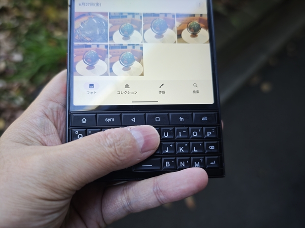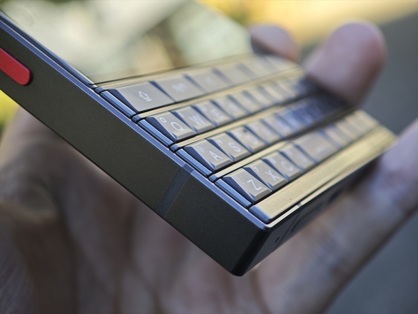 Titan 2の最大の特長はもちろん物理キーボードです。昔のBlackBerryと比較すると、キーは少々固く、コリコリとした感触であるため、指先に結構力が入る印象ですが、打ち心地自体は悪くありません。また、自動でバックライトがつくので暗い場所でも大丈夫です。