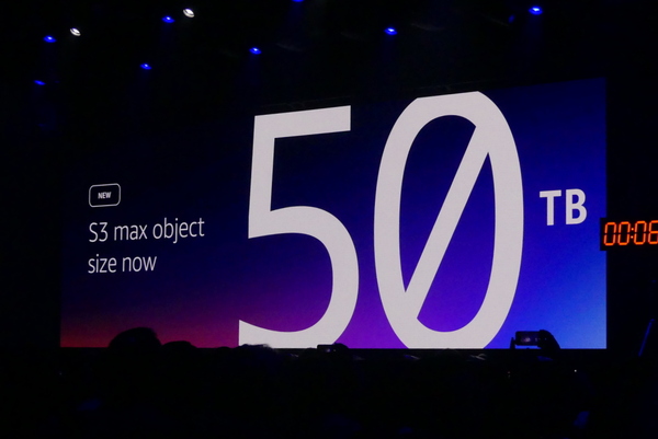 まず従来5TBだったオブジェクトサイズは、一気に10倍の50TBに拡張された。動画や地質、AIのトレーニングデータなど大容量データを分割することなく格納することが可能になる。「2006年、Amazon S3をラウンチしたとき、オブジェクトサイズは5GBだったが、その後5TBになったが、この数年で足りなくなった。2倍にするか、3倍にするか、結果10倍になった」とガーマン氏は振り返る。