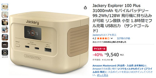 【Amazonタイムセール】Jackery Explorer 100 Plus 登場!
