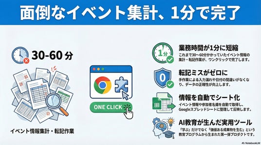 今回の拡張機能は単なる個人制作ではなく、実際に現場で使える、他者の課題を解決する、商品として成立する という意味で、教育プログラムの質の高さを象徴しています。