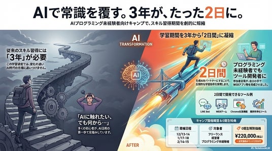 参加者はAIツールを活用しながら、“3年かかるスキルを数日~数週間で習得する” ことを目指します。
