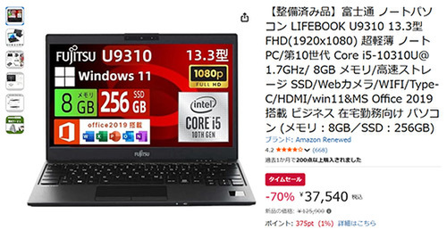 【Amazonタイムセール】【整備済み品】富士通 ノートパソコン LIFEBOOK U9310 登場!