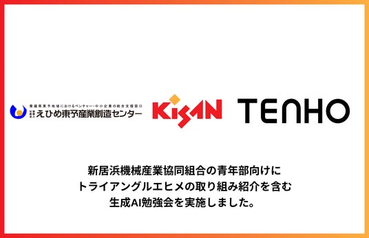 生成AI活用の内製化支援事業を展開する株式会社TENHO(本社:東京都渋谷区、代表取締役:田村 允・土田 龍矢、以下「当社」)は、公益財団法人えひめ東予産業創造センター(所在地:愛媛県新居浜市、理事長:古川 拓哉)と連携し、新居浜機械産業協同組合(理事長:萩尾 広典)青年部を対象に、トライアングルエヒメの取り組み紹介を含む生成AI勉強会を実施しました。