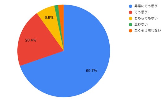 「次のプレイテストに参加したいと思いますか?」という設問では、69.7%の方が「非常にそう思う」、20.4%の方が「そう思う」と回答されました。