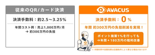 従来のQR・カード決済 (約2.5~3.25%) と比較して、決済手数料0%!