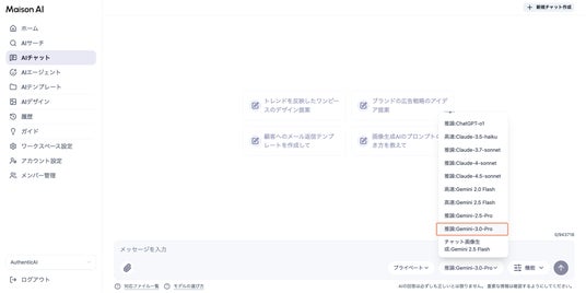 【画像:Gemini 3 Proに切り替えるMaison AIのチャット画面