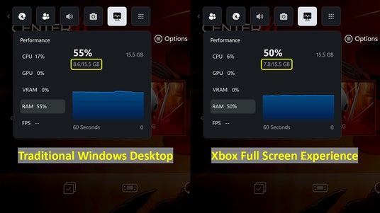 もっと軽く、もっと速く!: Xbox FSEなら、従来のWindowsデスクトップよりも5%以上メモリを節約。余ったリソースでゲームがさらに快適になり、ゲーム内フレームレート向上に効果が期待できます。