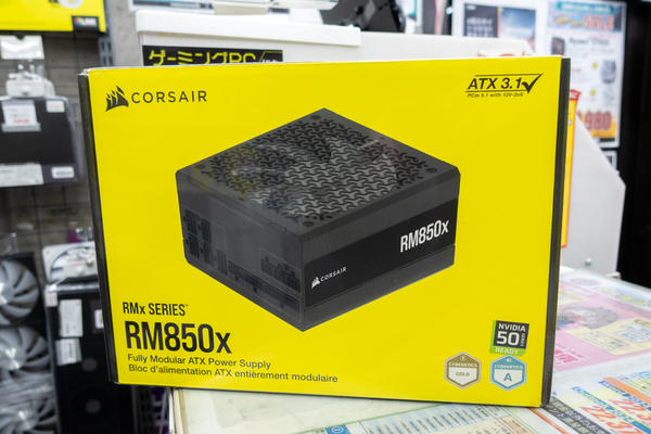 電源ユニットには、TSUKUMO eX.で定番人気のひとつとなっているCorsair「RMx 2024」シリーズの容量850Wモデルを搭載している。PC電源ユニットの品質を評価する新たな評価基準となる「Cybenetics」認証を受けており、本シリーズは「GOLD」認証を取得している。