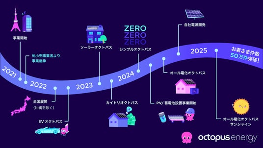 テクノロジーの力でCO2排出のない再生可能エネルギーを、魅力的な価格と使いやすいサービスで提供するオクトパスエナジーは、日本国内の電力契約件数が50万件を突破したことをお知らせします。オクトパスエナジーは2022年から2024年にかけて1,137%の成長を記録し、日本の電力会社上位40社の中で最も高い成長率を達成しました[1]。2021年の日本参入からわずか4年での到達です。