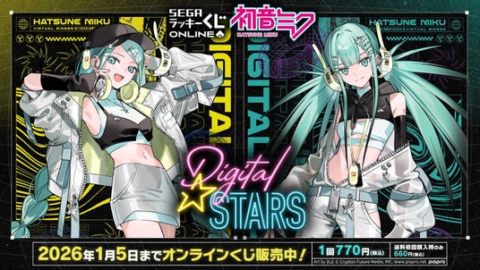 株式会社セガ フェイブは、セガ ラッキーくじオンライン「HATSUNE MIKU Digital Stars」を2025年12月5日11時より販売開始いたします。