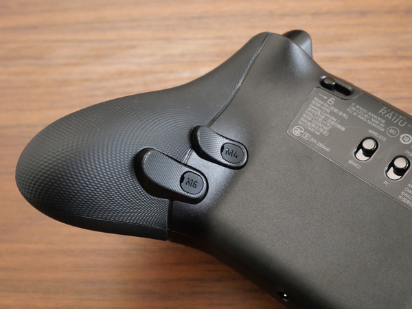 この4つのボタンは、グリップしたときにちょうど中指と薬指で押せる位置にしっかりとあるので、自分が通常ボタンで反応が遅れてしまうボタンなどを配置しておけば、かなり便利に使えます。