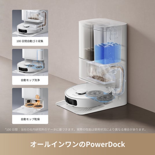 4. 完全自動ゴミ収集ステーション(最長100日間メンテナンス不要)革命的なDualBoost 2.0自動ゴミ収集ステーションにより、最大100日間※はダストバッグの交換なしで稼働可能。3.2Lの超大容量ダストバッグにゴミを詰まりなく自動収集し、メンテナンスフリーで手間いらずの完全自動お掃除を実現します。