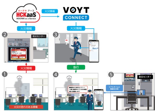 ボイット株式会社(本社:東京都渋谷区、代表取締役社長 CEO:永冨 泰高、以下:当社)は、2025年12月に開催される建築・土木・不動産の先端技術展示会「第10回JAPAN BUILD TOKYO」において、ホーチキ株式会社(本社:東京都品川区、代表取締役社長執行役員:細井 元、以下:ホーチキ社)のブース内にて、ホーチキ社の防災クラウドサービス「HOCHIKI as a Service(以下:HCKaaS(ホーチキアース)」と当社のAIインカムアプリ「VOYT CONNECT(以下:ボイットコネクト)」の映像通報ソリューションの連携システムを初展示します。
