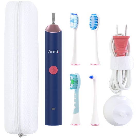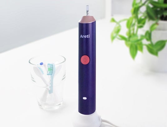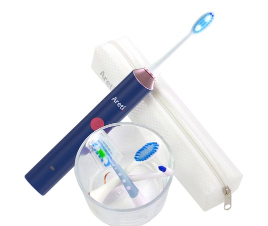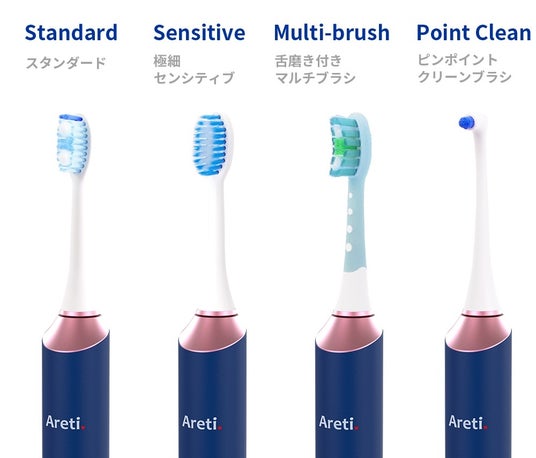 アレティの音波式電動歯ブラシは高速振動で歯の汚れを除去。2段階のスピード調整で歯ぐきに優しいケアが可能。
