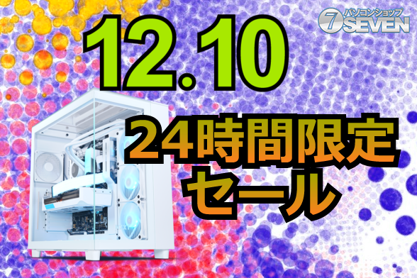 パソコンショップSEVENを運営するBTOパソコンメーカー、セブンアールジャパンは、12月10日に『2025/12/10 24時間限定セール』を開催する。このセールでは、最新のゲーミングPCやデスクトップPCが最大82,000円オフで購入可能となる。