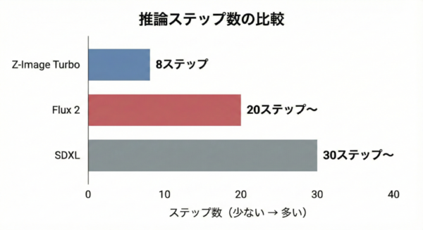 Z-Image Turboは、従来モデルでネックになりがちだった「多ステップ推論」と「VRAM負荷」を大きく抑え、ミドルクラスGPUでも高速に回せる点が最大の特徴だ。わずか8ステップで実用的な画質に到達する軽量さは、SDXLやFlux 2とは異なる現場向けのアプローチとして際立っている。
