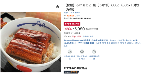 Amazonで特価:松屋の「ふわぁとろ 鰻」が48%オフ
