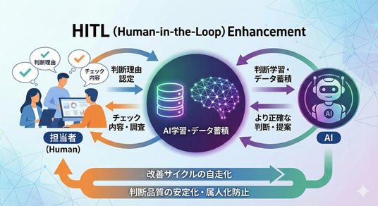 HITLとは、AIの判断や処理プロセスの中に意図的に人間の介在を組み込み、人のフィードバックをもとにAIが継続的に学習・進化していく仕組みです。