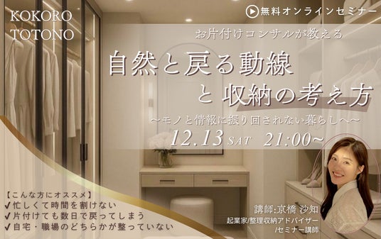 忙しい大人の暮らしを3ヶ月で“整う仕組み”に変える!お片付けから発展させたライフデザイン講座「KOKORO TOTONO 伴走型プログラム」12月13日提供開始