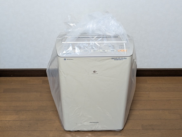記事を読んだ後で洗面所に向かうと、そこには、2017年から実に8年間、我が家の洗濯物を乾かし続けてくれたパナソニックの除湿衣類乾燥機がありました。型番はF-YHMX120。2016年の発売当時、4万5600円で購入した愛機です(参考記事:育児に本気で役立った家電 これがないと生きていけない体になった)。