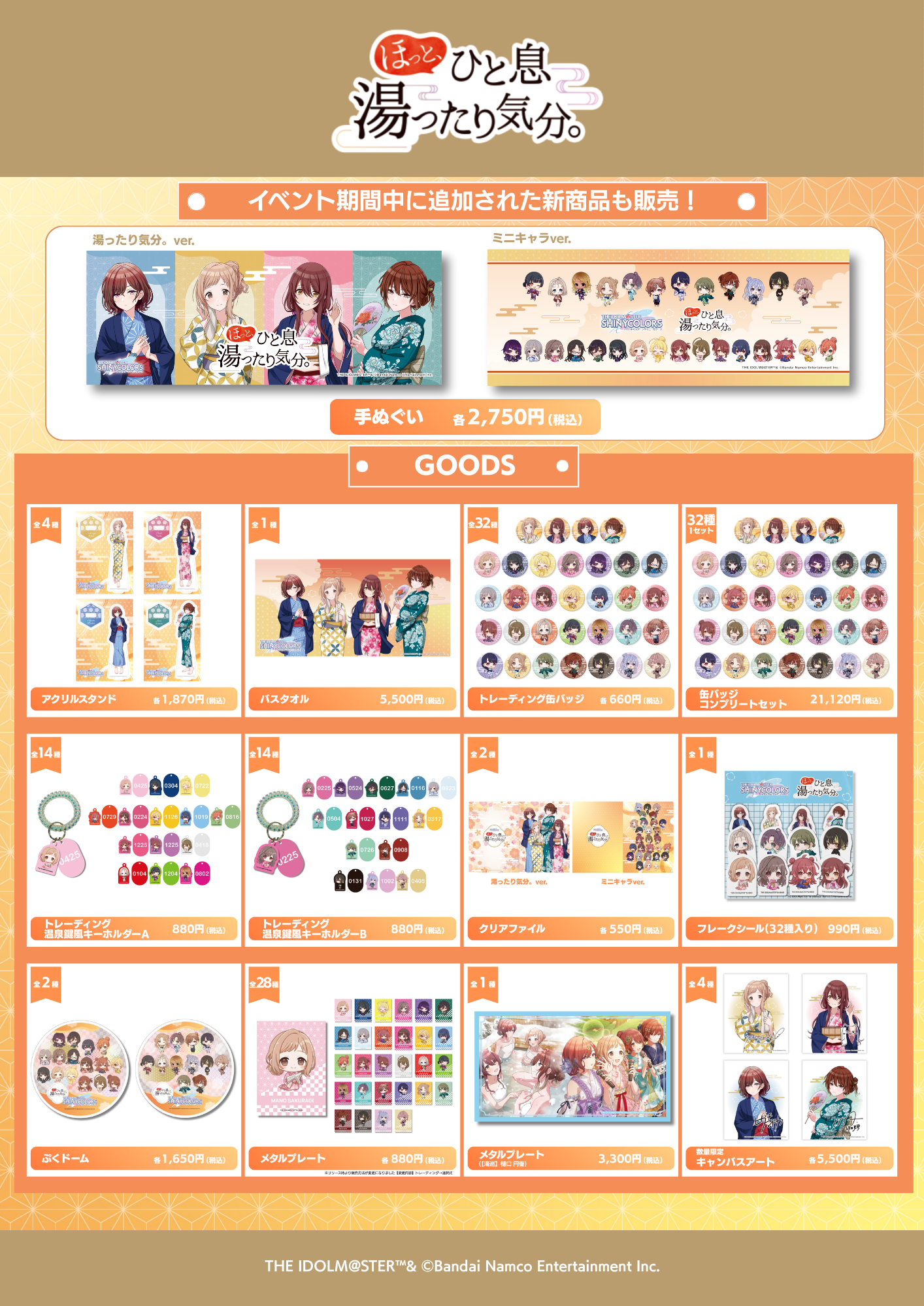 『アイドルマスター シャイニーカラーズ』×全国温浴5施設 コラボイベント「ほっと、ひと息湯ったり気分。」事後通販を開始!