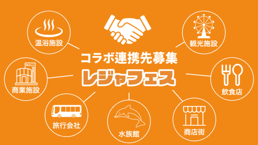 レジャフェスでは、様々な業種の企業・団体と連携を図ることで更なる発展へつなげていきたいと考えております。以下分野で連携にご興味のある企業・団体からのお問い合わせをお待ちしております。
